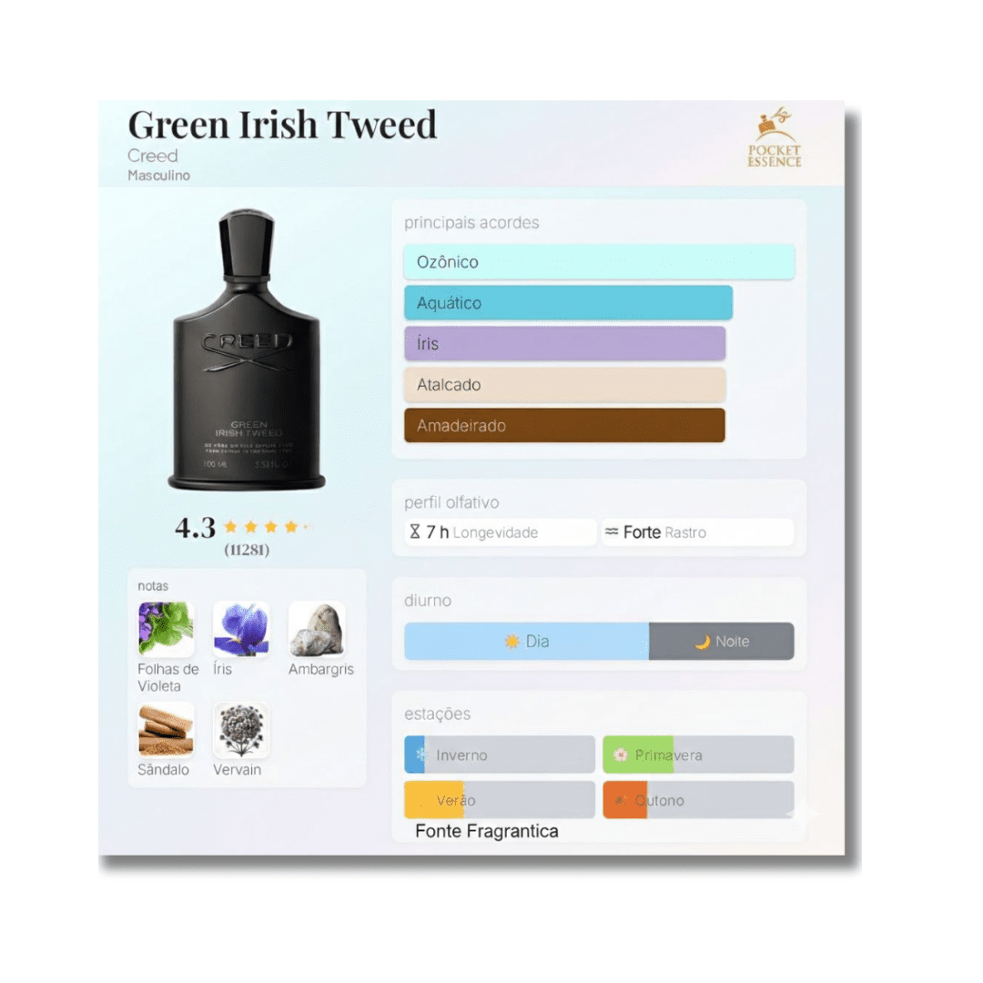 Um clássico absoluto da perfumaria masculina. Green Irish Tweed traduz elegância