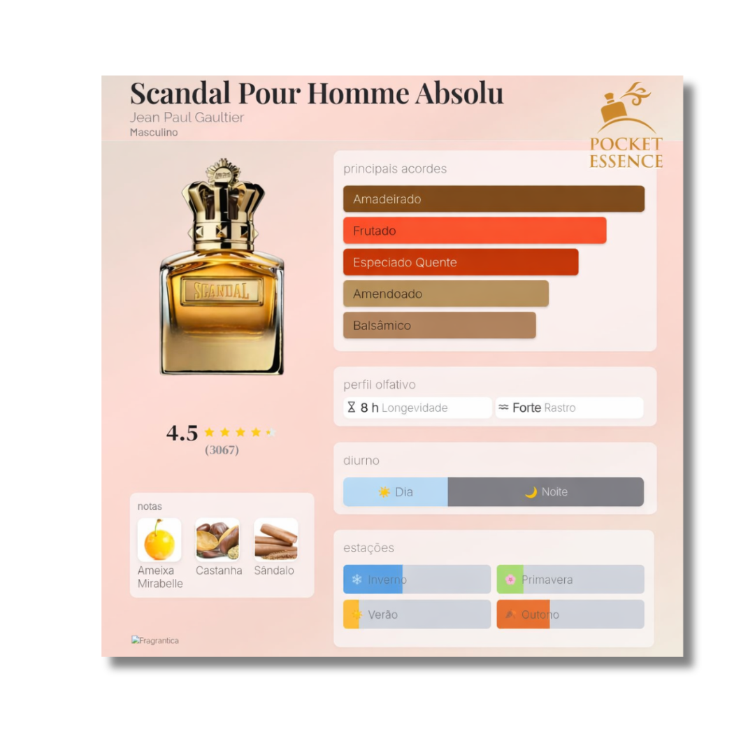 Conheça o Scandal Pour Homme Absolu na versão decant — uma fragrância masculina intensa,